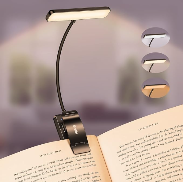 Long Lasting Book Light for Reading in Bed – Very useful and compact lamp for reading with red light so as not to tire your eyes at night. I love it because it’s super configurable, it has three temperature options and five intensity options. The clamp holds perfectly and it also has a rubber band on its back, so it stands on a table. After using it for two months almost every night, the battery is still at 50%.