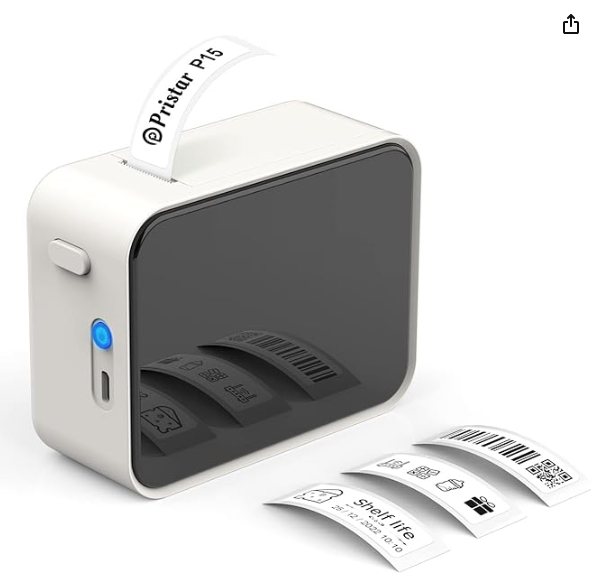Mini portable label maker – Pristar P15 thermal label printer uses thermal printing technology, no ink or toner needed to print labels, uses thermal separation label paper, comes with cutter, no dry battery, more environmentally friendly.
